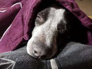 For now I'll share my latest fun with Lucy. My son has been out of town for two weeks, will be back this weekend for two days and then gone again for another week which means it's Lucy with me all the time. We are old ladies and do old lady things...........one of which is keeping warm in the chair together while I knit.